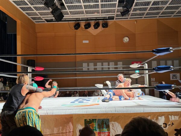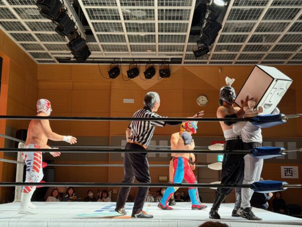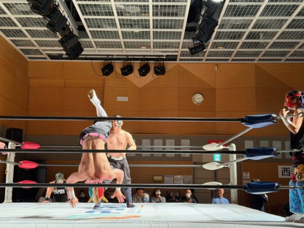 3月15日(日)、松山市総合福祉センター 大会議室にて、CIL星空プレゼンツのユニバーサルプロレス すべての人に、等しい「楽しさ」を。が開催された。先日の事、愛媛プロレスの社長であるプロレスラー(石鎚 山太郎 氏)と、本日のプレゼンターであるCIL星空の代表(井谷 重人 氏)が門屋組に来社し、3月15日に開催するユニバーサルプロレスへの想いが伝えられた。なんでも、井谷代表は私の小学校~中学校&塾が一緒だった同級生であり、7年前にも鹿鳴館宮谷圭一の忘年会(←7年前の様子はこちら)でもバッタリ再会した仲である。また、愛媛プロレスを力強く牽引する石鎚 山太郎選手も愛媛プロレス10周年記念(←その時の様子はこちら)を機に、門屋組として本気・本音で応援することを決めた仲・・・。今回、点と点が交じり合うご縁とつながりの中で、ユニバーサルプロレス観戦の機会を得ることができた。会場全体を笑顔と元気に変えて、日本でも類を見ない健常者と障がい者も楽しめる『すべての人に、等しい「楽しさ」を。』念頭としたユニバーサルプロレスは、松山市総合福祉センターから笑顔の輪が波紋のように広がっていったのであった。