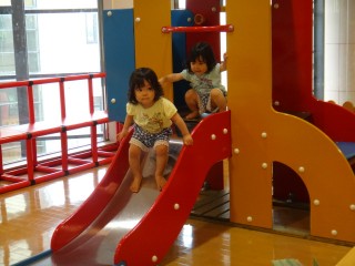 昼食後、パワー全開で滑り台をはじめ数々のアトラクションを熟していった子どもたち・・・。子守をする親はというと、気が気じゃなかった・・・。危険個所に行く娘を止めようものなら、そんな手を強く振りほどくほどの力を身に付けていることを本日知った私・・・。もうすぐで2歳になります。