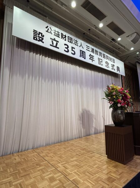 11月16日(日)、ANAクラウンプラザホテル松山にて、公益財団法人三浦教育振興財団 設立35周年記念式典が開催された。振り返ると、設立30周年の時はコロナ禍で、当時親父が89歳、私が42歳の時から5年が経過する中、1990年に三浦保氏の熱い想いによって設立した三浦教育振興財団は、35周年の時を迎えた。30周年記念誌では、門屋 齊編(←その時の記念誌はこちら)と門屋 光彦編(←その時の記念誌はこちら)が書かれ、夢を題材に奨学生たちに向けて言葉を綴った記憶を思い返す・・・。本日は会場内の後ろに貼り付けられた写真の親父の顔を見るとともに、三浦だよりを見て夢に向かって歩んでいく先人たちの言葉を見返した。35年の三浦保氏イズムが満載となる公益財団法人三浦教育振興財団の設立35周年記念式典は、輝かしく幕が開け、関係各位はもちろんのこと、奨学生たちも相集う素晴らしき笑顔と夢が広がる時間を過ごすことができたのであった。