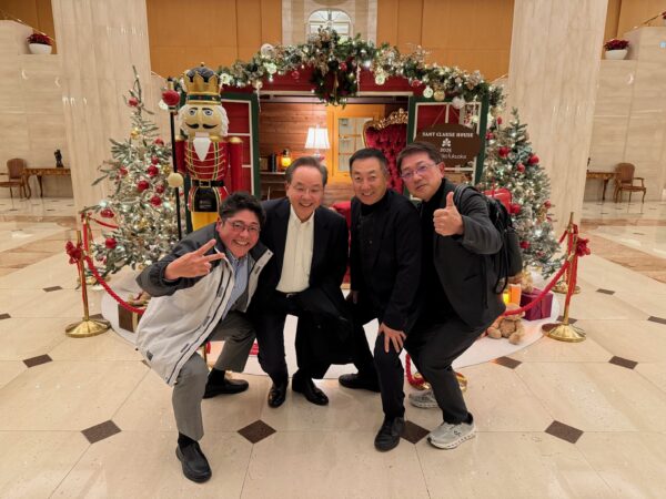 しん進でかけがえのない福岡ナイトを迎えた私たちは、明日の古賀ゴルフクラブの闘いに向けて、ホテル日航福岡のエントランスにあるくるみ割り人形前で記念写真を撮って機運を高め合った。明日の古賀ゴルフクラブの仁義なき戦いへと続く・・・。