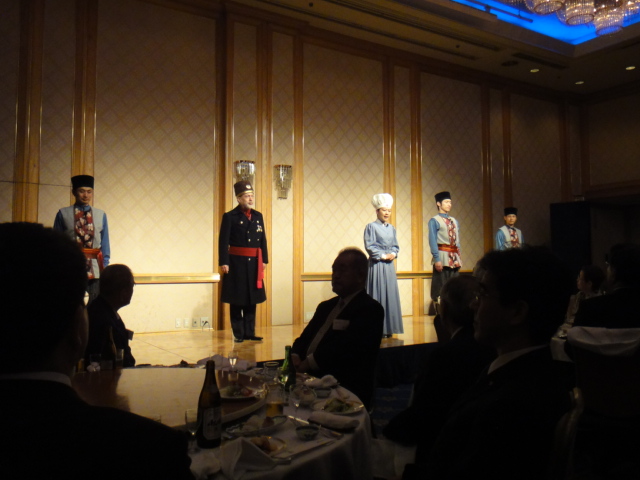 引き続き懇親会に移り、有功会会員のご健康とご多幸と被災地の一日も早い復旧、そして有功会員が一丸となることを祈念して、佐伯副会長の乾杯のご発声の下、懇親会は幕を開けた・・・。前の席では、嬉しそうに人参焼酎を呑んでいた齊会長の姿があった・・・。