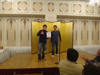松山支部より個人の部優勝に輝いたのは、なんと私でありました。僭越ながら優勝スピーチまでさせていただいた始末・・・。何から何まで感謝のしようがありません・・・。優勝トロフィーと賞状、そして賞品にはヴィトンの財布でありました。私は財布を持たないマネークリップ派なんで、そのまま妻へと横流しとなりました・・・。大切に使わさせてもらいます。今後益々、大西青年部会長を筆頭に(社)愛媛県建設業協会青年部会が一丸となっていきますことを切に願っております。本日は誠にありがとうございました。