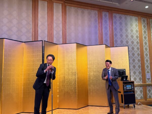 コイニー副代表幹事の独断と偏見で、本日のグループ対抗カラオケ対決の1位と2位が決定した。1位は愛媛FCの茉莉江ちゃん、2位は日本政策投資銀行の伊藤さんが選ばれた。今宵の新入会員同期会の事を忘れないで、これからの愛媛経済同友会活動に寄与していただきたいと思います。本日は誠にありがとうございました。