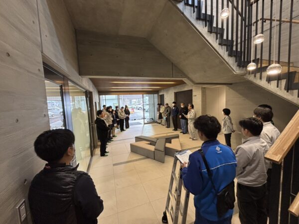 12月15日(月)、株式会社荒谷建設コンサルタント四国支社建替工事の施主検査並びに建物完成引渡しが執り行われました。敷地内にたった3台しかない車がない中で、神職様の車のナンバーと荒谷建設コンサルタント社用車のナンバー9428が合致するという奇跡的で且つ幸先良いご縁をいただく中、2025年3月14日(金)に起工式を執り行ってから9ヵ月の施工期間(社内検査)経て、無事に1期工事の建物完成引渡しの日を迎えることができました。この日を迎えることができましたのも、お施主様・近隣地域の皆様はもちろんのこと、谷本所長・上田君をはじめ現場に相集ったすべての協力会社の皆様のおかげでございます。本当にありがとうございました。