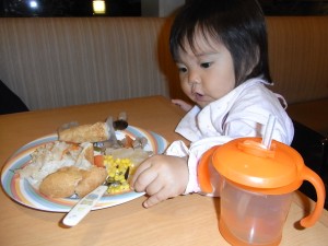 数ある色んな食事を堪能することのできる「ふきのとう」。子ども用の皿に盛られた食事のコーンだけを、器用に一粒づつ手に取って口に運んでいた奏来。その様子は米粒を与えた沢ガニのようだった・・・。
