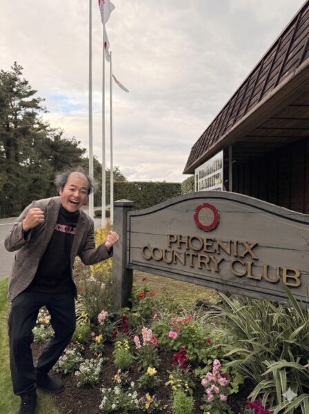 昨日、気温が20℃くらいになるよ!と言われて、薄着で来てみたものの、7℃というかなりサムスだったので、慌てて上着を羽織った私・・・。6年前の111点のリベンジに燃えるとともに、名門フェニックスカントリークラブを楽しむぜ。