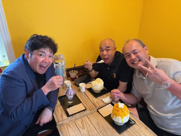 ゴルフ後は、パイチンパグちゃんレンタカーで、土づくりからこだわった百年以上の老舗喫茶「豆ポレポレ」でコーヒーを楽しんだ後、海沿いのスイーツカフェ「かんな+plus」でかき氷と紅芋アイスを楽しんだ私たち・・・。スイーツ待ち時間は、置いてあったウォーリーを探せ!的な猫を探せの絵本を楽しみながらキャッキャキャッキャとやっていた。が、しかし、声が大き過ぎたのか、途中から入ってきた外国人が向こうがやかましい!と言っていたのを坊主とハ〇が見逃さなかった。我々、やっぱりかなりうるさいみたいっす。
