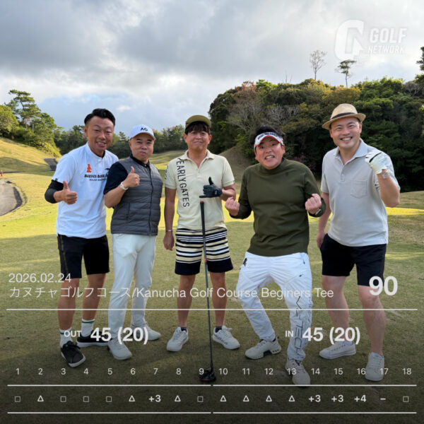 2026年幕開けから本日まで、ゴルフに関してはポンコツゴルフを展開してきた私・・・。本日は人生初となるカヌチャゴルフコースということで、90点は是非切りたいと希望だけは夢見て、朝一ドライバーショットに臨んだ。すると、これが意外や意外にサイコーのドライバーショットを決めて、コースがよくわからない左ドッグレッグの複雑コースのフェアウェイど真ん中に位置付けることができた。これには、安里先輩から「門屋、サイコーだな!」との一言をいただいた。一方、前評判では127点の男としてレッテルを貼られた安里先輩だが、127点を叩くような感じはなく、ドライバー、バンカーショット、パッティング共にイイ感じでラウンドされていた。また、パイチンパグちゃんにおかれては、前半戦は超ポンコツだったものの、後半戦から実力を発揮して、あわや30台?というところまで上り詰めた。そんな中、ポンコツIQピンクごりらは本日もポンコツで、ゆらゆら揺れるイップスパターも火を噴くことなく、終日ノーワンパットでフィニッシュとした本日の私のスコアは、OUTコース45、INコース45の90点。栄えある優勝に輝いたのは、後続組のハブ酒まつりでお馴染みの村長だった。こうして、次回は5月にニッシーのお膝元の岐阜の地で闘うことが決定した議長・委員長との親睦ゴルフは、最高のおもてなしをしていただいた安里先輩に感謝感謝のシンバホールディングス創業60周年記念の第11回目となったのであった。明日の松山帰省へと続く。