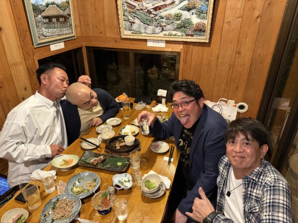 本日の懇親会場所のすいどぅんちであっり乾杯を行った。安里先輩と再会に際して、未来を見据える熱き話を行うことができた。最高のゆいまーるをありがとうございました。