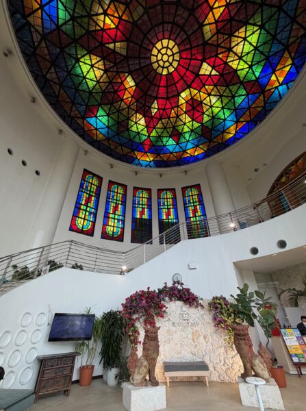 パイチンパグちゃんの会頭補佐の那覇JCつながりで、琉球ガラス村に訪れる機会を得た私・・・。館内に入ると、ステンドガラスをはじめ、色鮮やかな琉球ガラスの数々が置いてあり、琉球ガラスの歴史も学ぶことができた。