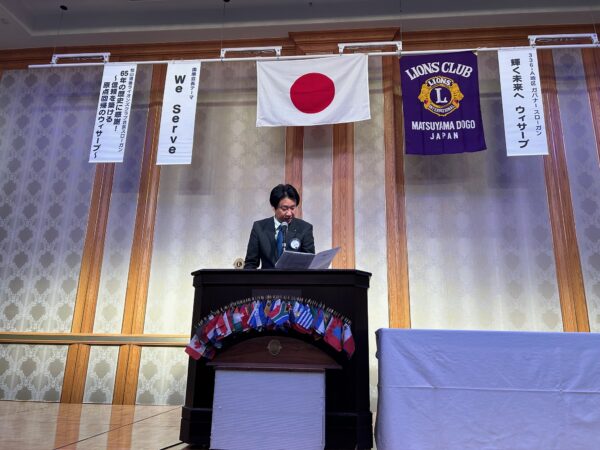 本日は、松山道後ライオンズクラブ 第1565回例会に多くの皆様方にご参加いただきまして、誠にありがとうございました。結成65周年の節目の時はまだまだ道半ばですが、参加していただいた皆さんが良き一歩を踏み出せるように、皆さんにとって価値ある楽しいワクワクするクラブ運営を心掛けていきますので、積極的なご参加とこれからの一人一人の奉仕の精神を築いていきましょう。引き続いて、どうぞよろしくお願い致します。