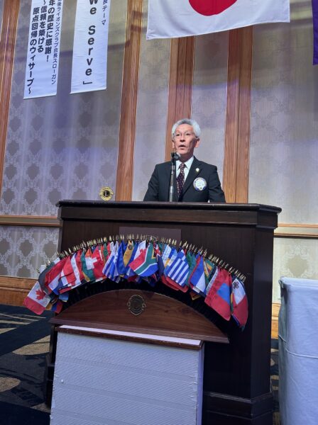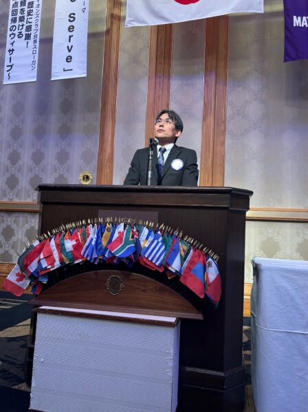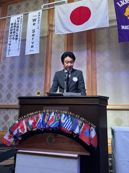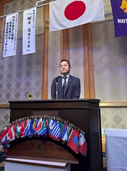 本日は、松山道後ライオンズクラブ 第1566回例会に多くの皆様方にご参加いただきまして、誠にありがとうございました。本日は遠方よりも相模原けやきライオンズクラブより本山会長、例会にゲスト参加いただき、心から感謝と歓迎を申し上げます。繋いでいただいたL二宮さん、ありがとうございました。今年も残すところ1ヵ月と少々となりましたが、結成65周年の節目の時はまだまだ道半ばですが、参加していただいた皆さんが幸せな一歩を踏み出せるように、皆さんにとって価値ある楽しいワクワクするクラブ運営を心掛けていきますので、積極的なご参加とこれからの一人一人の奉仕の精神を築いていきましょう。引き続いて、どうぞよろしくお願い致します。