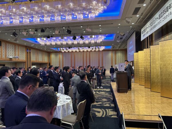 本日は株式会社オートプロジェクト創立35周年記念パーティ並びに社長就任パーティのご開催、誠におめでとうございます。心よりお慶び申し上げます。アナログ人間だった私を、パソコンを通じてグローバルな世界へと導いていただいた日野会長。イッパチ会の絆の下、マラソンを通じて何事に対しても挑戦する気持ちを教えていただいた日野会長。サービス業という、自分のことより相手のことを・・・の精神を教えていただいた日野会長。株式会社オートプロジェクト様より私は、数々の成長の機会をいただくことができました。このご恩をお返しするべく、共に新時代への一歩を踏み出して参りたく思っております。次の50年、100年へと株式会社オートプロジェクト様の今後益々のご活躍とご発展と、絆とご縁で集ったすべての皆様のご健勝・ご多幸を切に願っております。本日は誠におめでとうございました。