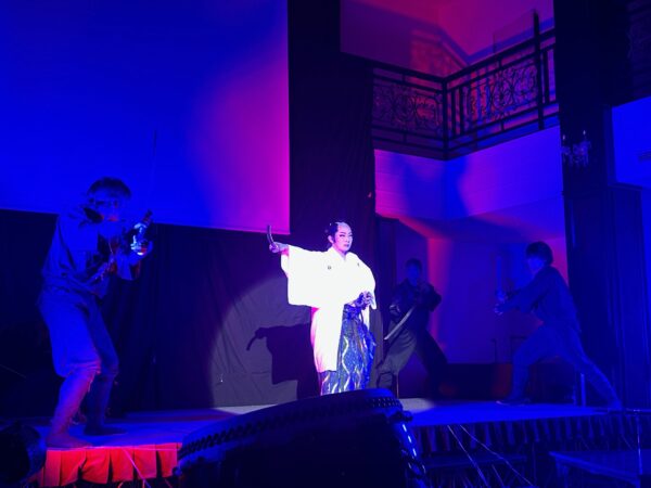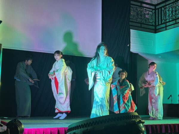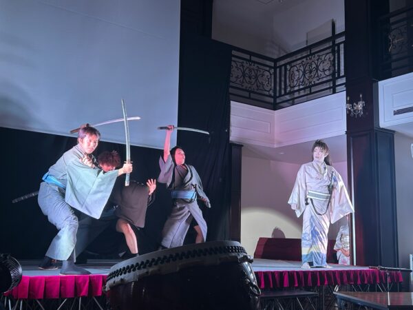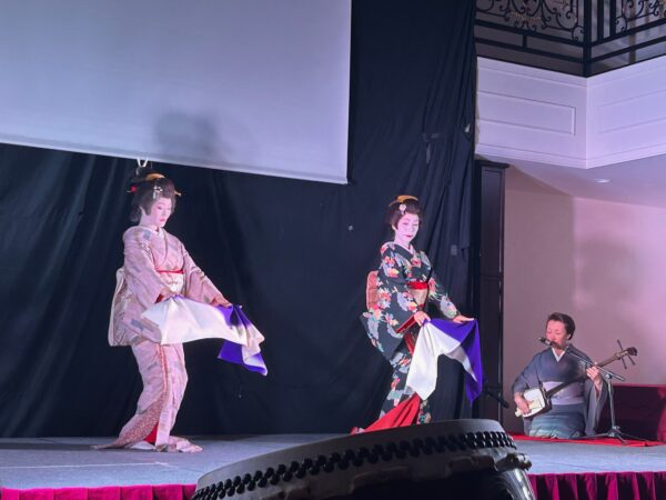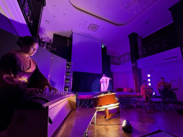 10月29日(水)、山の手迎賓館にて、愛媛の芸術と文化の振興協議会プレゼンツの秋天一碧~伝統芸のナイトタイムエンターテインメント~「道後の秋、楓が如く」が開催された。愛媛の芸術と文化の振興協議会とは、愛媛県における芸術文化の振興並びに地域の活性に寄与し、後進の育成に取り組むことを目的とした振興協議会である。2024年10月7日に、愛媛の芸術と文化の振興協議会の社団設立のお披露目(←その時の様子はこちら)を迎え、本年より本格的に春・夏・秋・冬の春夏秋冬の4回を公演していくことになった。社団設立後記念すべき春公演1発目となる第一部・第二部制の愛媛の価値あるナイトタイムエンターテインメントは、お弁当とお酒を食しながら、愛媛が誇る能狂言(清水)・道後芸妓連~野球拳・舞踏・尺八・素踊り・殺陣~大団円・三味線~琴・花魁早着替えの盛りだくさんが大和屋本店 宴会場「杜若の間」で披露されるとともに、夏公演2発目では夏らしくアレンジされた能狂言をはじめ道後芸妓連・三味線・尺八・琴・舞踊りがはなゆづき「平安の間」で披露された。今回は春・夏公演と打って変わった秋公演第3発目として、第一部に「白鷺伝説」、第二部に「玉の石伝説」の二部構成で伝統芸の価値ある秋の舞のすべてが融合するショータイムが披露されたのであった。