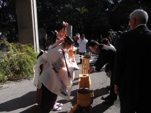 そして参列者たちは神前に向かい、玉串奉奠の2礼2拍手1礼の作法により、秋祭りのはじまりを感謝すると共に、すべての方々の安全を祈念申し上げたのであった・・・。天の恵み、地の恵みに感謝します。