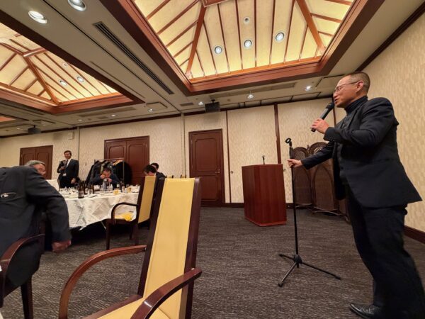 12月18日(木)、ANAクラウンプラザホテル松山 中国料理 桃園にて、第31回楽問会が開催された。前回(←前回の様子はこちら)は、愛媛大学の仁科学長の計らいにより、愛媛大学の研究施設への見学ということで、愛媛大学プレゼンツとなる愛媛大学の愛媛大学による愛媛大学のための楽問会が展開された。産・官・学が相集い、本日は愛媛大学の現状と未来、そして株式会社日本政策投資銀行 松山事務所長(伊藤 聡 氏)による問答テーマの「生成AIについて」討論される中、2025年結びとなる第31回楽問会は、愛大の話、愛大留学生の話、JR松山駅周辺開発の話、人口減少の話、愛媛の芸術と文化の振興協議会の話、真剣Golfの話、インドの話、インドネシアの話、ベトナムの話、ゴルフの話、趣味の話に花を咲かせ、各テーブル内で楽しく問答することができたのであった。