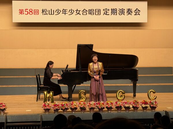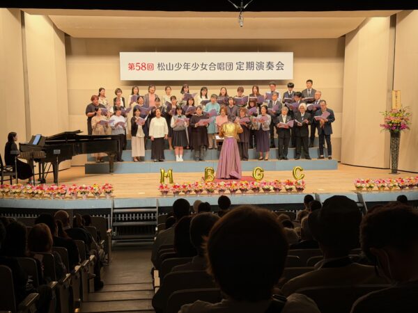 第1部のオープニングをはじめ、「松山から世界へ」「ティーチャーズ ステージ」「心豊かに大人のハーモニー」が披露されるとともに、第2部の「やなせたかし」ワールド「世代をこえるMBGCのハーモニー」が披露された。会場内は拍手喝采となった。最高の歌声をありがとうございました。
