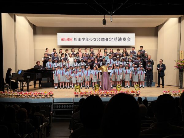 4月29日(水)昭和の日、松山市民会館 中ホールにて、第58回松山少年少女合唱団 定期演奏会が開催された。「松山少年合唱団」は、昭和39年(1964年)5月に小学4年~6年の男子だけの合唱団として設立されたのが発起で、昭和56年(1981年)に小学5年~6年の少女を加えて、「松山少年少女合唱団」と団名が変わった。設立当初の育成団体として、会長が団長に成り代わり、松山道後ライオンズクラブが長きに渡り見守り続けている。一昨年亡くなった故L門屋 齊にとっても思い入れがある設立62年目を迎える松山少年少女合唱団の集大成となる第58回定期演奏会は、今年度結成65周年の節目の時を迎える松山道後ライオンズクラブ(①・②・③←本年度の松山少年少女合唱団との思い出はこちら)にとっても、常に見守ってくれている保護者の皆様をはじめL阪本先生・松井先生並びに松山少年少女合唱団OB・OG、ラ・セゾンブルー&有志の皆様にとっても、心のたからに残る思い出深い定期演奏会になるとともに、本日ご参加いただいたすべての皆様にとっても幸せを感じる日となったのであった。今後の松山少年少女合唱団のご活躍と活動に大いに期待しています。本日は誠にありがとうございました。