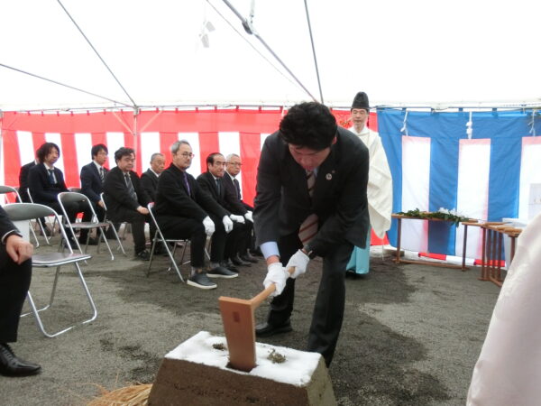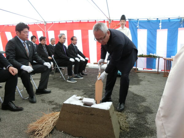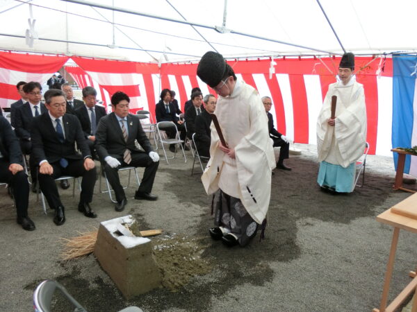 長曽我部宮司によって、建物が建つであろう四方の払いが執り行われた。