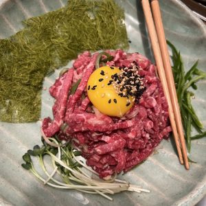 一テーブルに店員さんが焼いてくれるスタイルのお店・・・。これにより、アルコールの摂取量が進む進む。時間が経つにつれて、テンションは爆上がり、声もトーンも激しく上がり・・・。