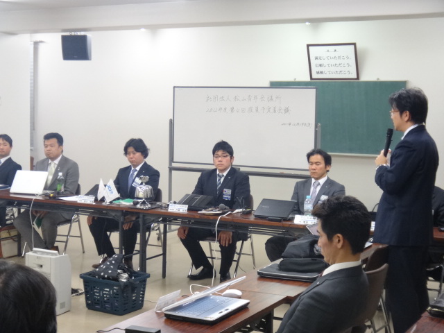 12月19日(月)、門屋組本社大会議室にて、今年最後の(社)松山青年会議所 第4回役員予定者会議が開会された。2012年度帽子体制が1月1日を迎えたその日から、円滑なスタートが切れるように、今から準備に準備を重ねながら役員予定者メンバーたちとコンセンサスを取っていく・・・。こうしたことを頭に入れながら、確固として揺らぐことのない絆を構築する第4回目の役員予定者会議は、松平委員長予定者による「60年の歴史に 感謝しながら生き抜こう そして未来を切り拓こう」の元気なスローガンの唱和と開会宣言とともに幕を開けたのであった・・・。