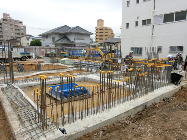 (仮称)レーベン山口徳山新築工事の現場では、鉄筋工事及び内装工事が行われていた。外壁関係の工事が終わり次第、落下養生ネットを復旧するようにしてください。引き続いて、安全管理の徹底をよろしくお願いします。