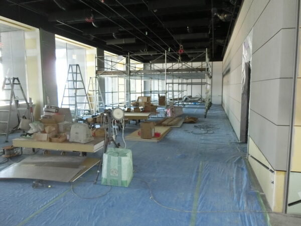 最初にパトロールしたつばきウィメンズクリニック新館新築工事の現場では、内装仕上げ工事及び金属工事が行われていた。整理整頓が行き届いた現場で、安全面にも問題無く、段差の注意標示が良かった。今後とも不安全行動には注意して安全管理をお願いします。