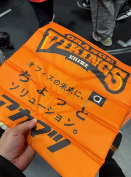 11月22日(土)、昨日の第8節で連勝に土がついてしまった愛媛オレンジバイキングス・・・。本日の第9節で再び勝利を手にすることを願い、愛媛オレンジバイキングスvs神戸ストークスとの熱闘を自身の目で確かめるべく、そして門屋組プレゼンツのサンキュー卵プロジェクト~愛媛のプロスポーツを応援しよう!~(←事業内容はこちら)と、熱烈応援企画の門屋組ブーストゾーンを体感するために、松山市総合コミュニティセンターでの試合を観戦して楽しんだ。