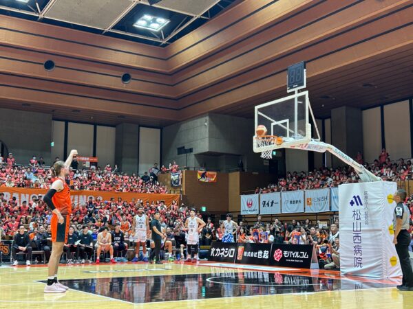 俊野選手の同点フリースローが入った瞬間・・・。この時、会場内のオレンジ色のざわざわは一生忘れない。