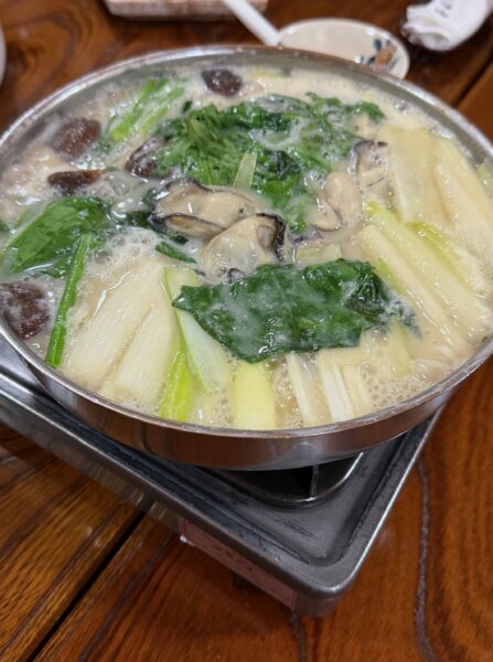 牡蠣食べて、身も心もリフレッシュすることができた私・・・。特に、白味噌の牡蠣鍋は絶品だった。貴重な機会をいただき、心から感謝申し上げます。また、クスハシ大王先輩におかれては、行き帰りの運転していただき、誠にありがとうございました。