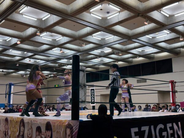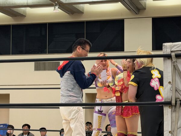 私自身、女子プロレスを観戦するのは初めてのことである。3vs3マッチでは、東昇技建プレゼンツの試合が行われ、コイニーより松山城1年分が贈呈されるとともに、株式会社門屋組プレゼンツの試合では、門屋組の創業年に因んで116年分の道後温泉が贈呈された。なんかよーわからんが、楽しかったっす。