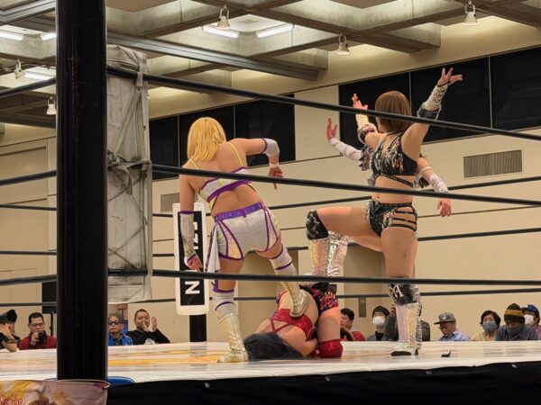 更にそれから5年後には、ZERO1設立15周年記念 謝恩パーティー並びに奉納プロレス 第13回大和神州ちから祭り(①・②←その時の様子はこちら)に声を掛けていただき、鏡割りにも登壇させてもらい、改めて人と人とのつながりと出会いに感謝する機会を得る事ができた。が、しかし、ZERO1 20周年&21周年記念大会で愛してやまない大谷晋二郎選手は負傷してしまった。2022年6月4日に大田区総合体育館にて、何度でも立ち上がれ!大谷晋二郎エイド!!となる押忍PREMIUM ONE TEAM ZERO1!が開催されたが、私自身、その日プロレスを観戦することができないが、不死鳥のように何度でも立ち上がる大谷晋二郎選手へ寄附(←その時の様子はこちら)をさせていただいた。こうした流れの中、あれから4年が経過して、先日のタイ遠征記念コンペの最中にオッキー沖田から連絡があり、この度、大谷晋二郎選手の「いじめ撲滅」を引き継いだ女子プロレスのマリーゴールドの元気ハツラツを観戦するために、コイニーと共に松山市総合コミュニティセンターへと駆けつけた次第である。女子プロレスの過去を反映するとともに、未来への革命を導くマリーゴールドは、大谷晋二郎選手の意思が引き継がれた何度でも立つ不撓不屈の精神を見せてくれたのであった。