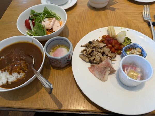 旅行に行っても朝は絶対に食べない私だったが、今回は〇山たけーしがお勧めするウェスティン都ホテルの朝食ビュッフェということで、食べてみることにした。朝カレー、2杯いってもうたわ。