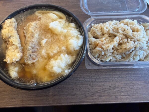 平安神宮近くにある山元麺蔵が長蛇の列だったため、隣接するテイクアウト専門の山元麺蔵でごぼううどんを食べた。並ぶ手間なく素早く美味しく食べることに成功・・・。麺はコシのあるモチモチ麺で、かなりボリューミーだった。