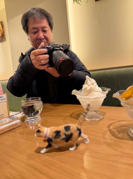 平安神宮近くの猫店長がいるカフェでデザートを共にした。道端を散歩するミーアキャットにも遭遇し、テンションアゲアゲとなった。こうして、すべてのYouTube撮影が終了し、我がまち松山へと帰省するべくリムジンバスで京都駅へと向かった。お疲れ様でした。